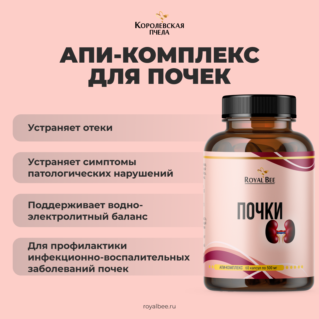 Апи-комплекс для ПОЧЕК, 60 капсул (1 шт.) - натуральное средство для восстановления функций мочевыделительной системы, стимулирует кровообращение и лимфоциркуляцию в мочеполовой системе, способствует процессу регенерации и формированию здоровых клеток мочевыводящих органов.