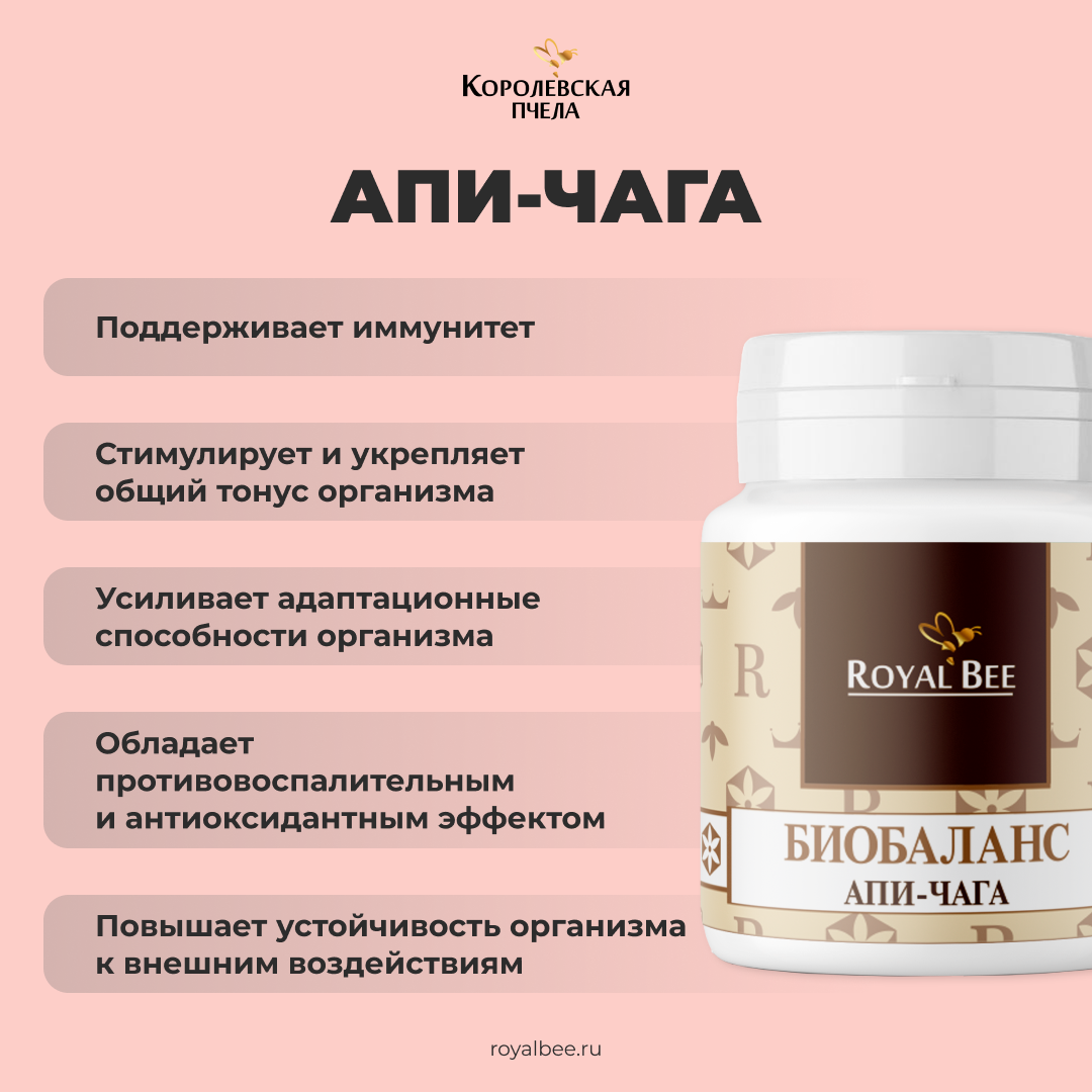 Апи-чага, 20 г (1 шт.) - помогает поддерживать иммунную защиту организма, оказывает антиоксидантный, адаптогенный, стимулирующий и оздоравливающий эффект, способствует улучшению самочувствия и оказывает общетонизирующее действие.