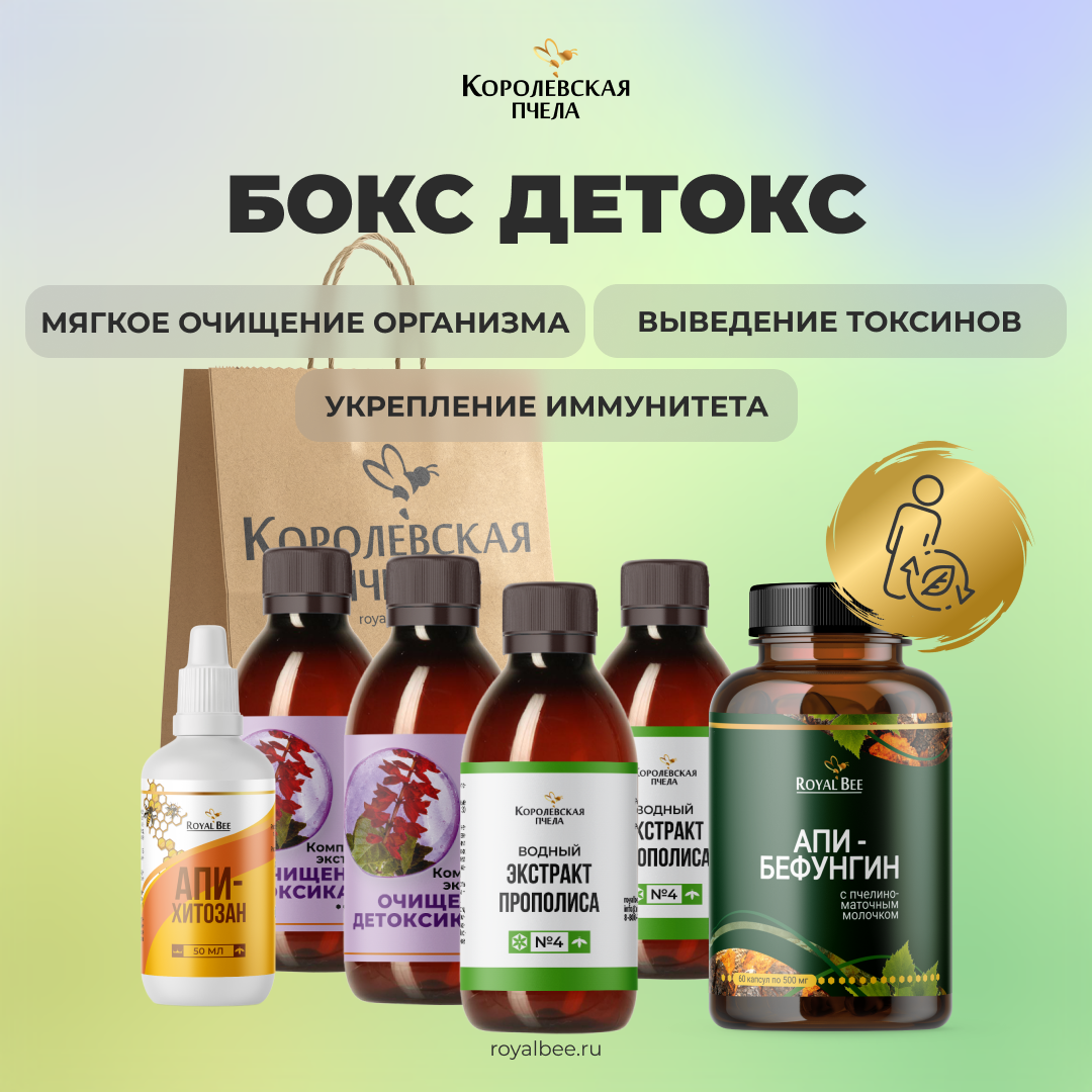Хотите очистить организм от токсинов, почувствовать легкость и зарядиться энергией, но не знаете, с чего начать? БОКС "ДЕТОКС" от "Королевской Пчелы" идеально подходит как новичкам, так и тем, кто уже знаком с продуктами – мягко очищает организм и поддерживает его естественные функции.БОКС "ДЕТОКС" помогает мягко нормализовать обмен веществ, поддерживает работу печени и пищеварительной системы, укрепляет иммунитет и наполняет день легкостью и здоровьем.
