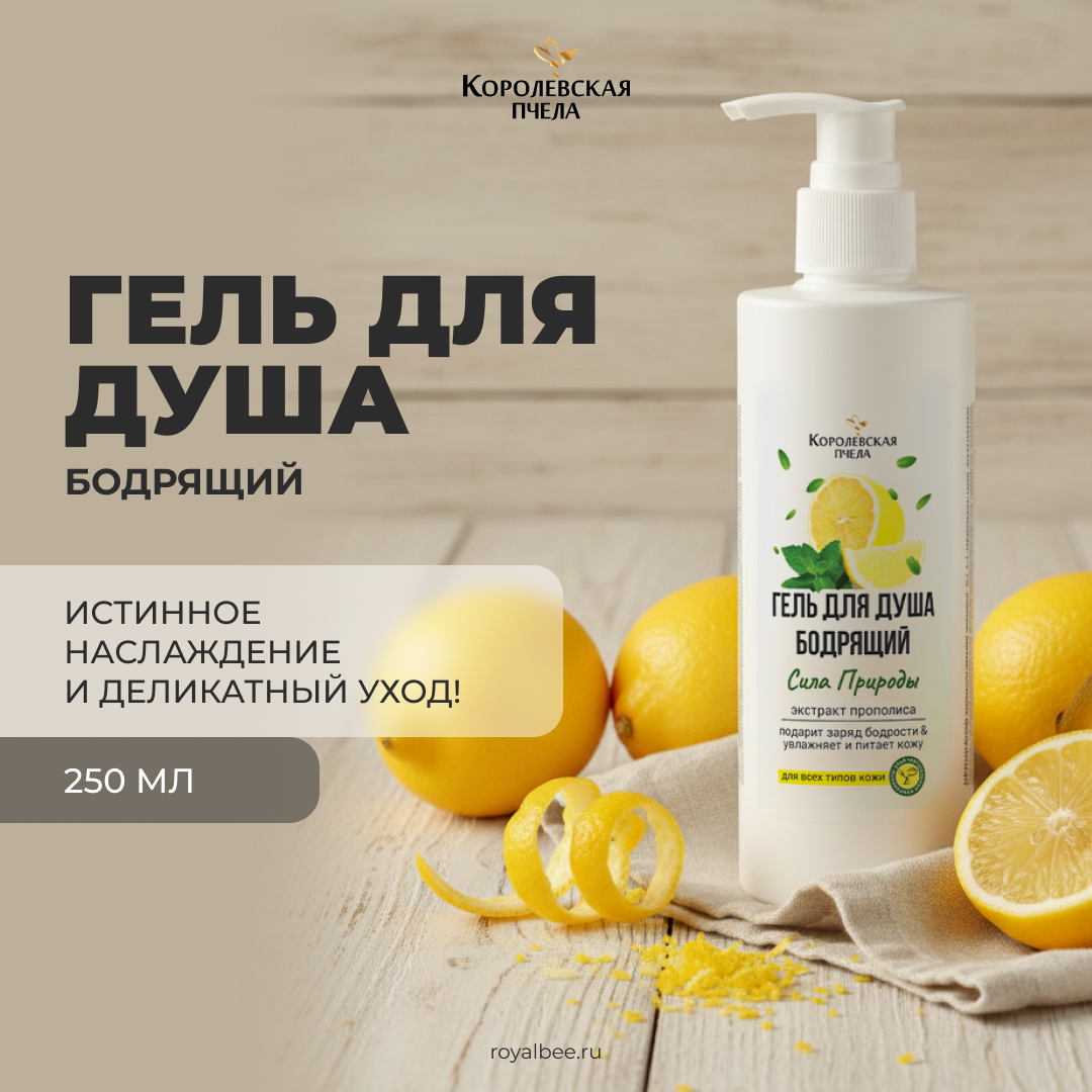 Бодрящий гель для душа Royal Bee с ароматом лимона и мяты великолепно тонизирует и сделает Вашу кожу шелковистой и более гладкой. Подарите себе заряд энергии и моменты истинного наслаждения! Побалуйте себя!