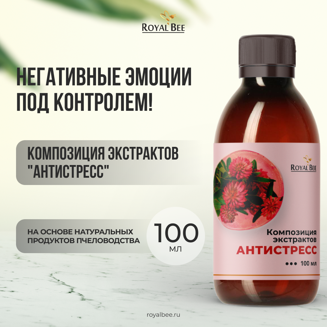 Композиция экстрактов «АНТИСТРЕСС» - это идеальное сочетание природных компонентов и мёда, которое помогает справиться с депрессией и бессонницей. При постоянном применении композиции экстрактов «АНТИСТРЕСС» укрепляется иммунитет и нормализуется работа нервной системы.
