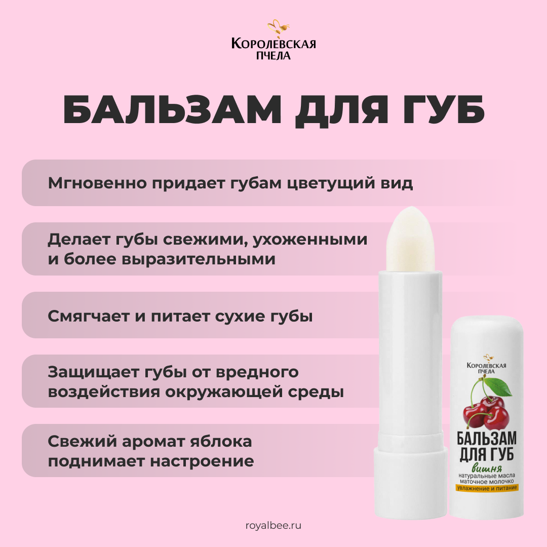 - Бальзам для губ с ароматом вишни, 5 г - это идеальный помощник для защиты и ухода за вашими губами каждый день. Он эффективно увлажняет, питает и смягчает кожу губ, создавая защитный барьер от негативного воздействия окружающей среды. Благодаря натуральной формуле, бальзам заботится о здоровье и красоте ваших губ.