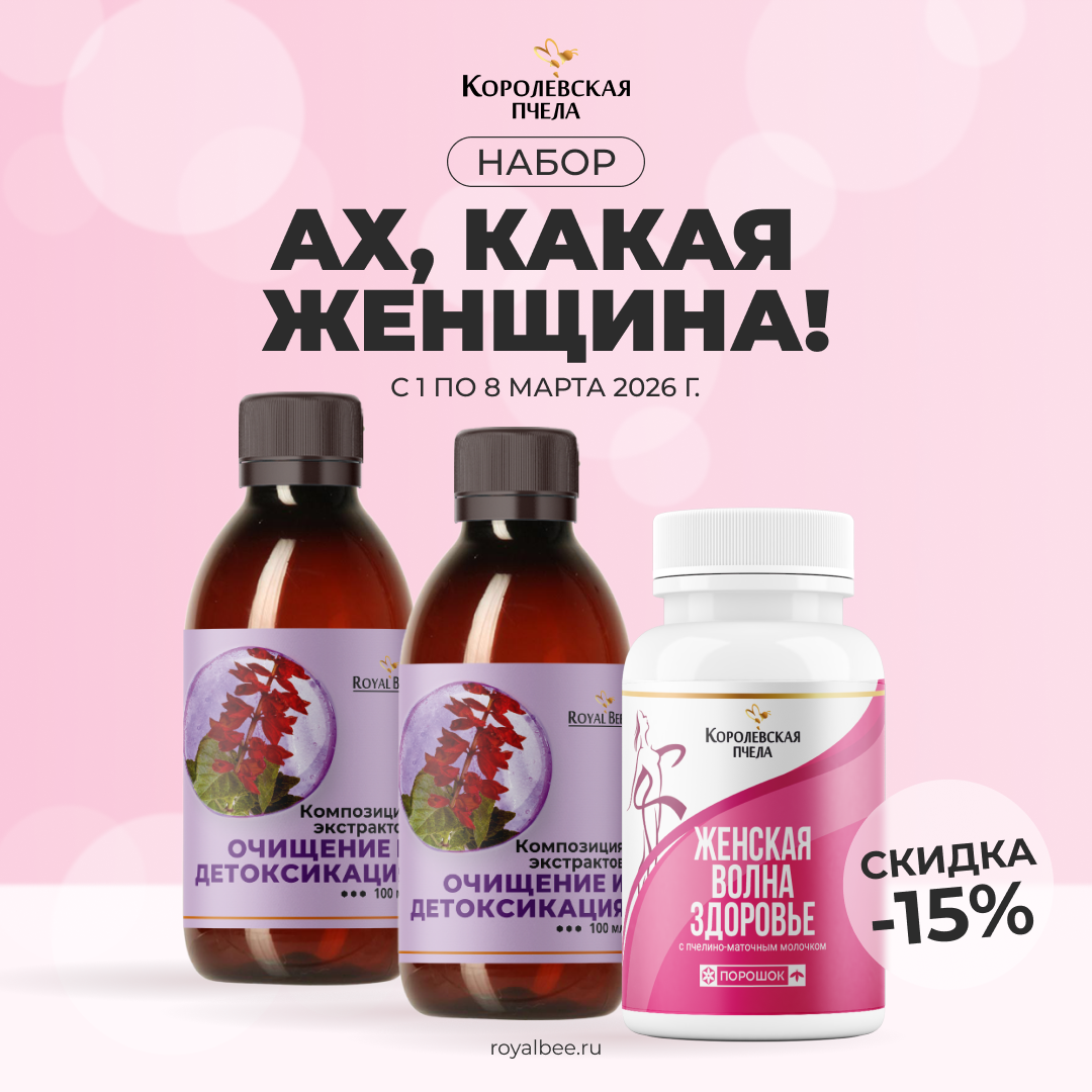 Акция проводится с 01.03.2026 г. по 08.03.2026 г. включительно в интернет-магазине royalbee.ru и может быть отменена в любой момент, без предварительного уведомления покупателей при отсутствии товара на Центральном складе компании "Королевская пчела".