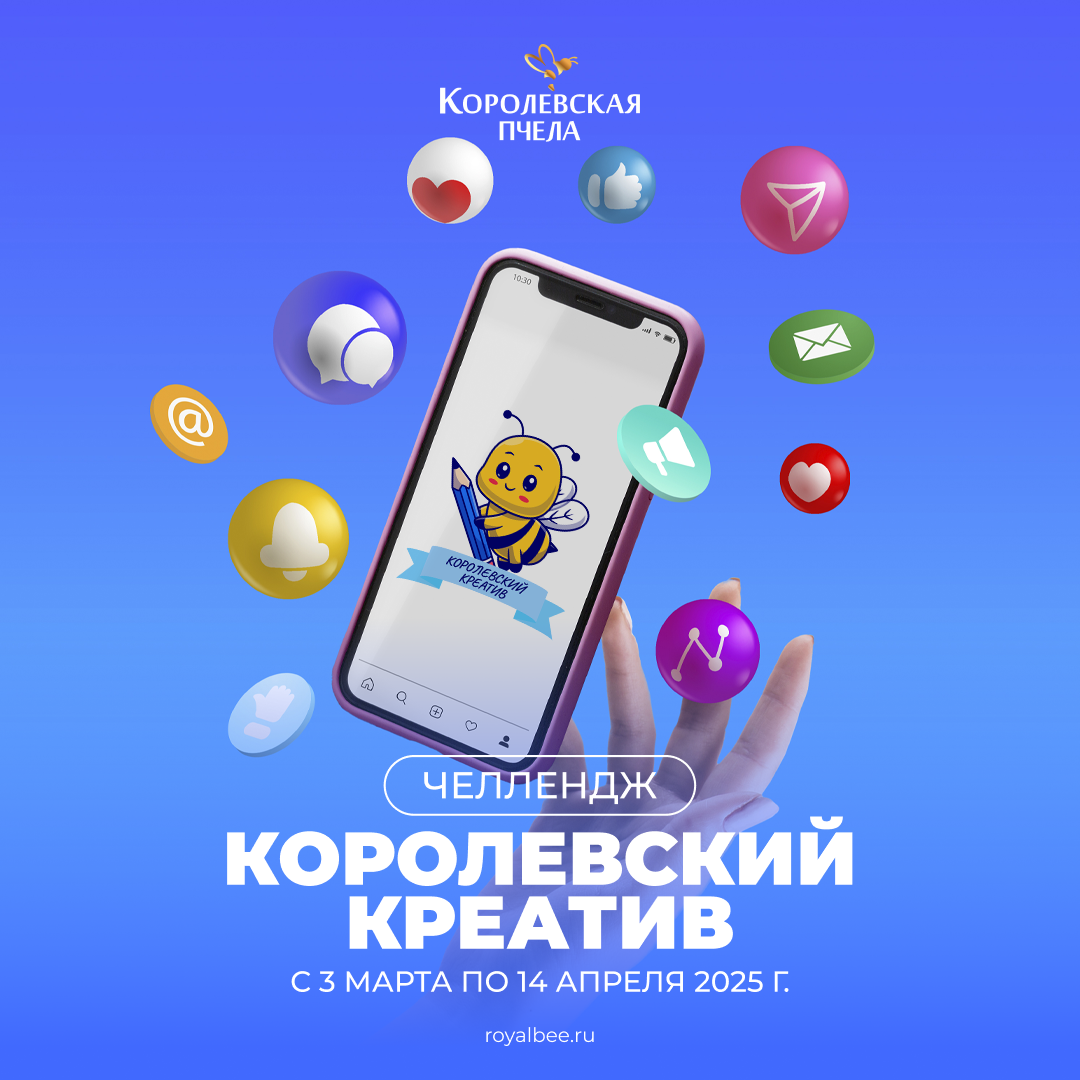заполнить заявкуКаждую неделю выполняйте новое творческое задание о продуктах "Королевская пчела". Публикуйте пост (текст + фото/видео) в ВКонтакте или Telegram с хэштегом #КоролевскийКреатив и отметкой @royalbee_official. Чем больше активности – тем лучше!
