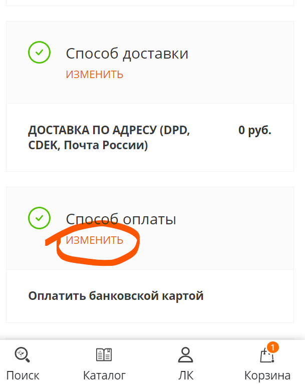 При оформлении заказа открывается только окошечко оплаты банковской картой.